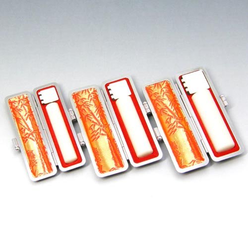 印鑑セット 3本 本ワニ(腹側)付 S 本象牙(特上) 15 12 10.5mm 手彫り仕上げ